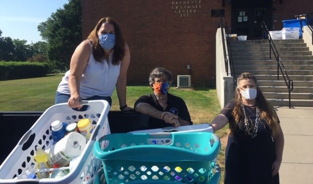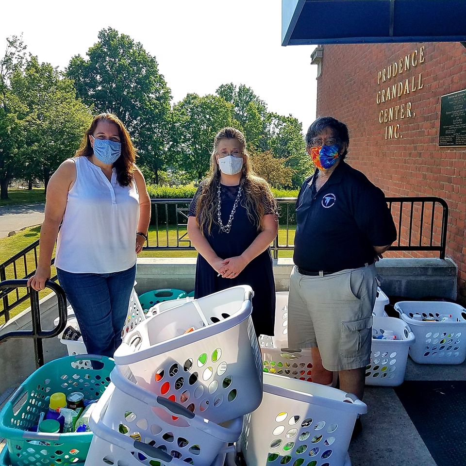 The 2020 Hartford Convention’s planned interactive charity activity at the Family Luncheon was repurposed as a delivery of 28 filled Household Helper baskets to the Prudence Crandall Center today. The baskets were filled with much needed cleaning supplies with the support of the Hartford Pond, Ocean State Puddle, and the 2020 Convention Committee.