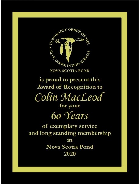 After a long Covid break, the Nova Scotia Pond flocked together for an evening of fellowship and to recognize some of their long standing members on November 4, 2020.